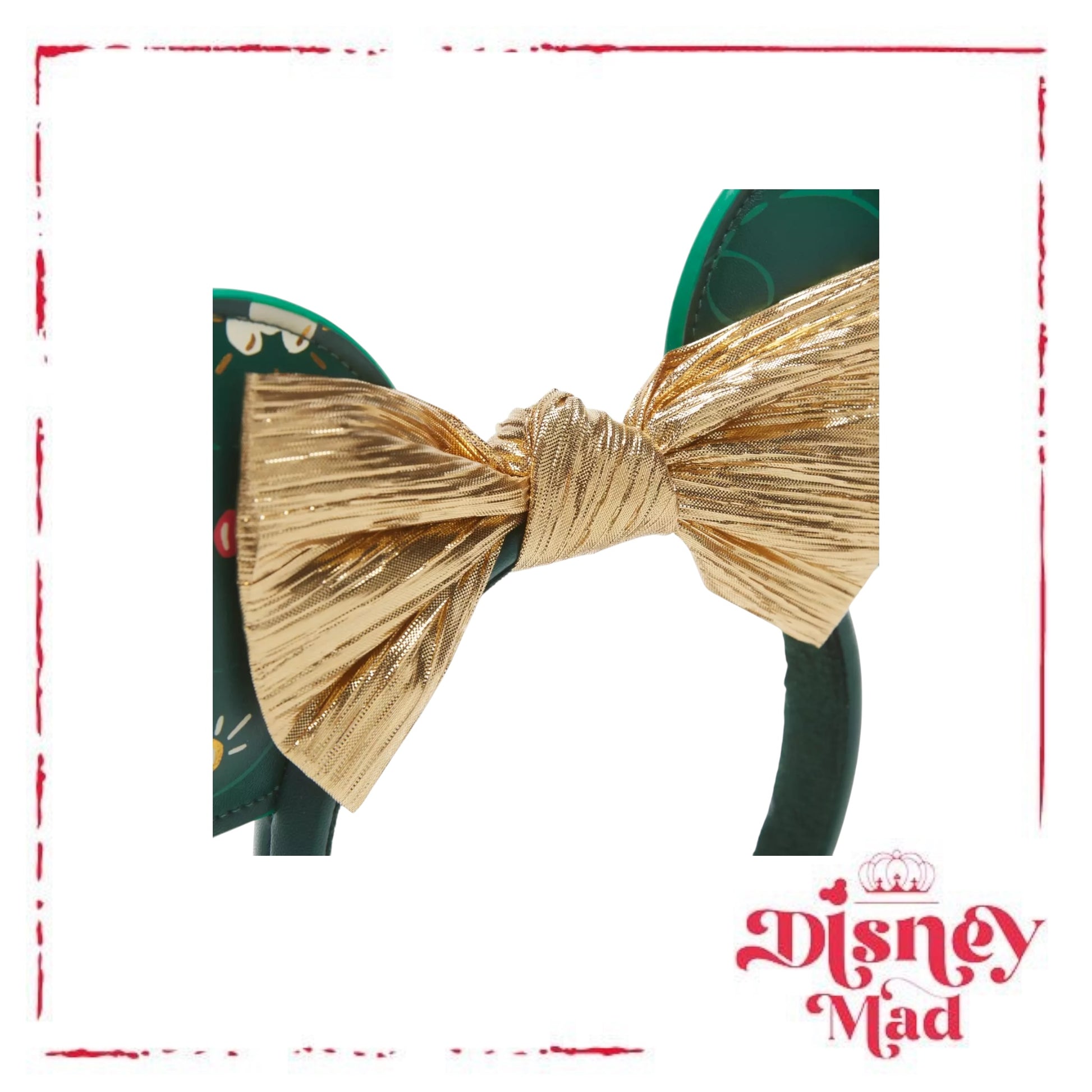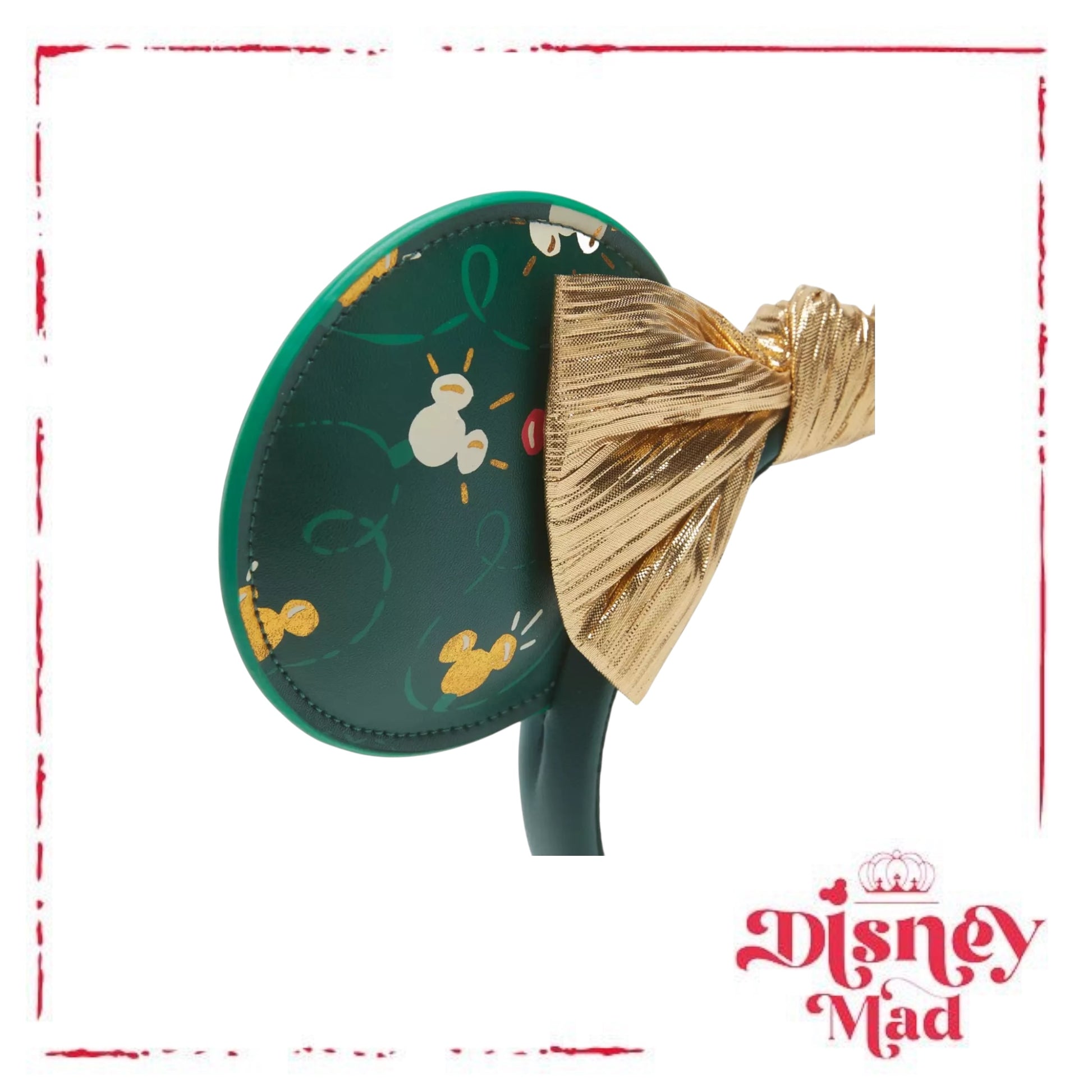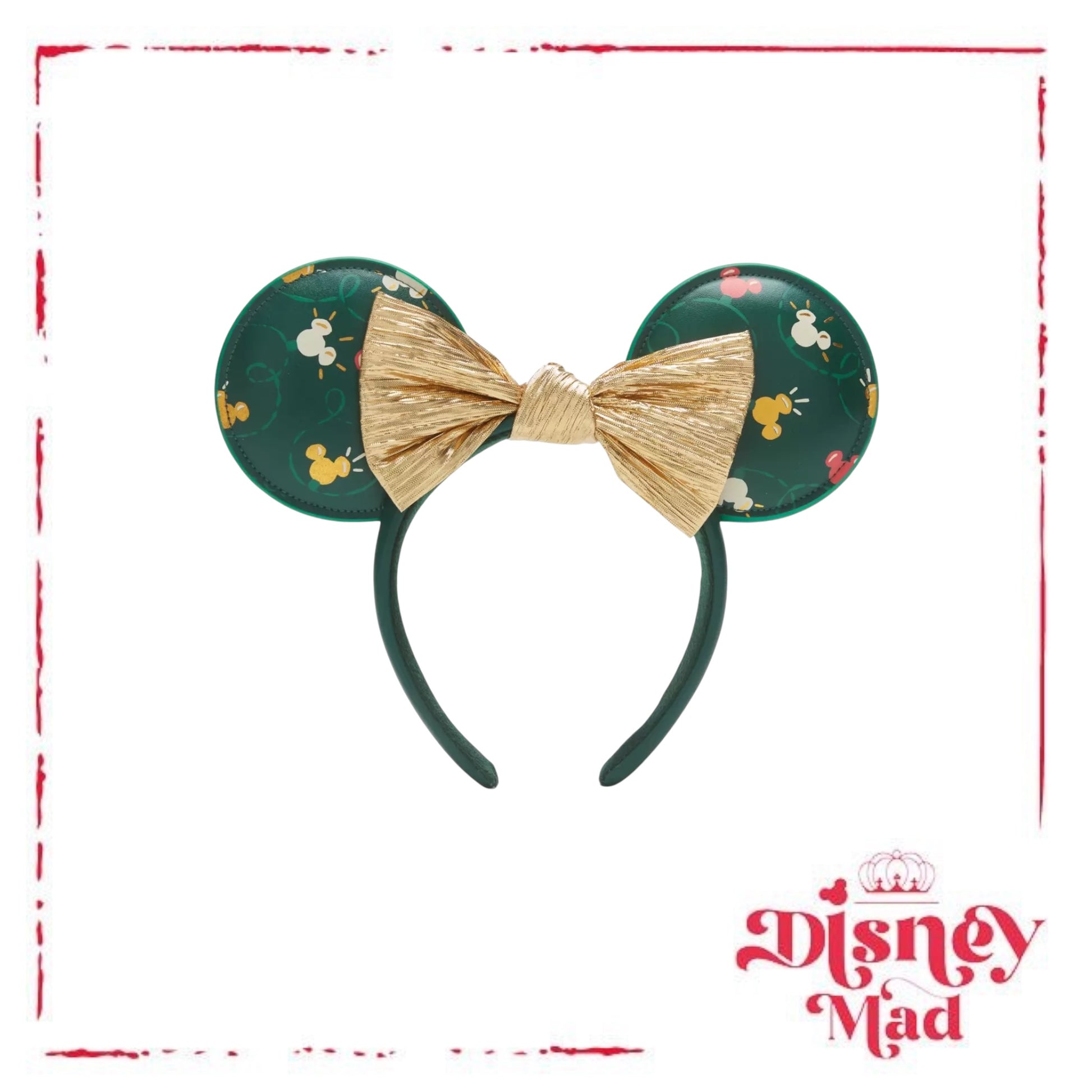 You'll feel a little light headed when wearing this ear headband featuring strings of Mickey icon holiday bulbs. The bold design is accented with a dazzling metallic golden fabric bow that's sure to make this a festive favourite!