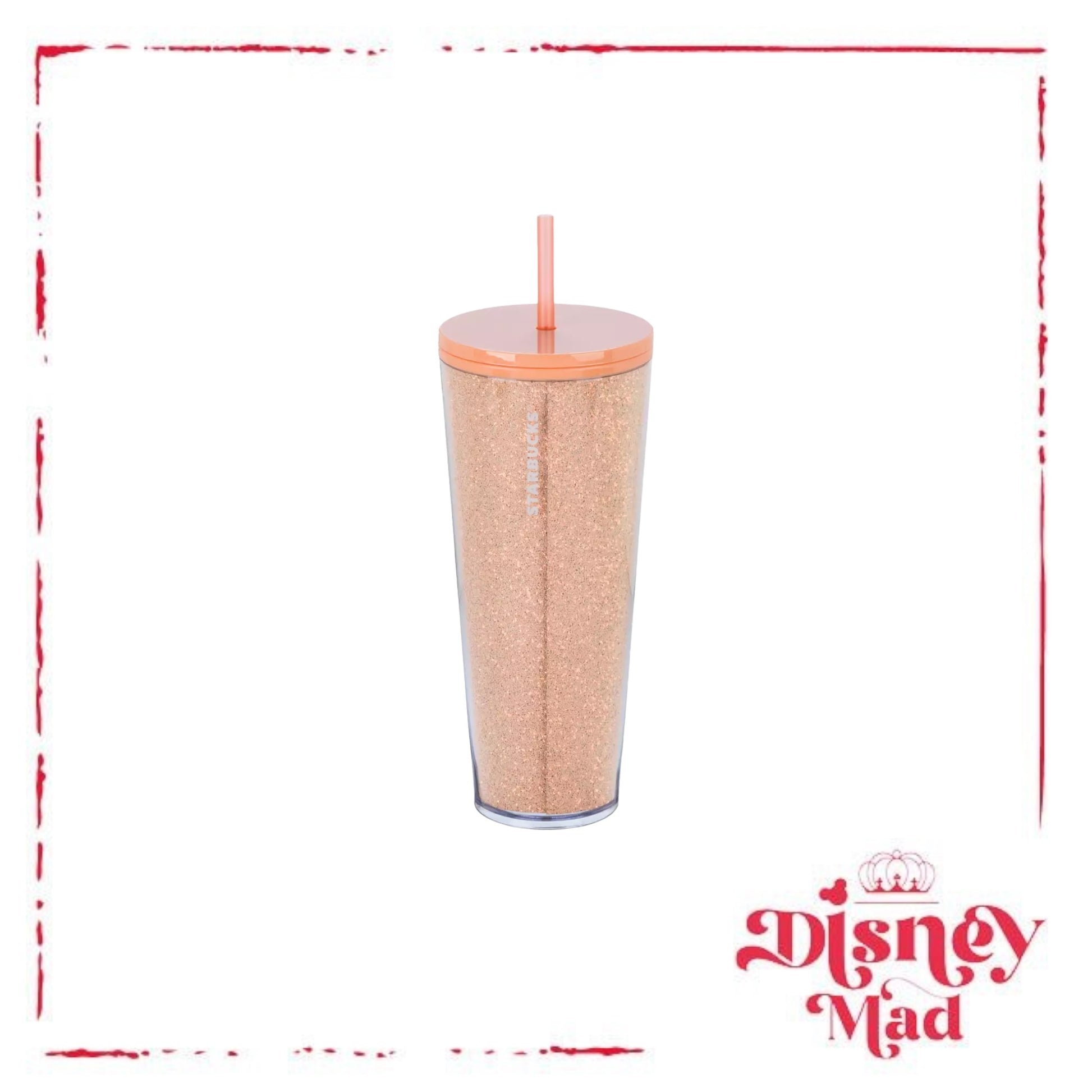 Sparkle and shine and your pal Mickey Mouse make this Starbucks® tumbler feel so very special. With allover glitter on the inside wall plus the legendary standing Mickey icon in metallic rose gold and the Disneyland logo, this glittery tumbler with straw is sure to spark Magical memories with every sip.