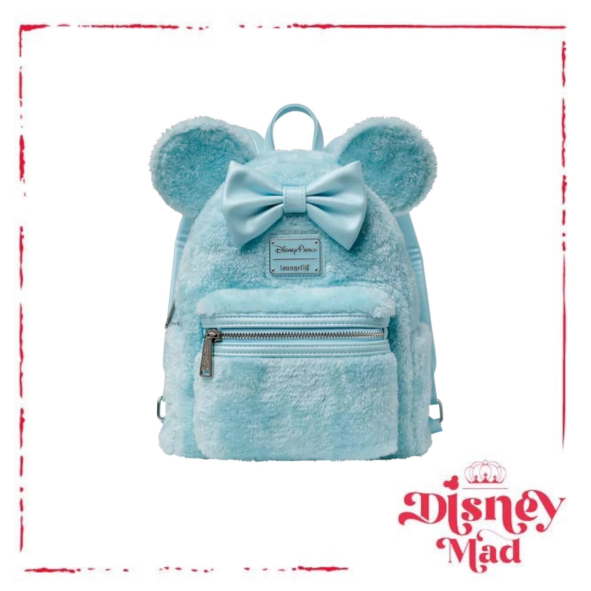 Despite its coloring, you'll feel anything but blue whenever you're carrying this mini backpack from Loungefly. Sporting Minnie's signature bow and 3D ears, this cute and cuddly bag features a tinsel faux fur covering combined with coordinating simulated leather detailing to add a little sparkle to your day.