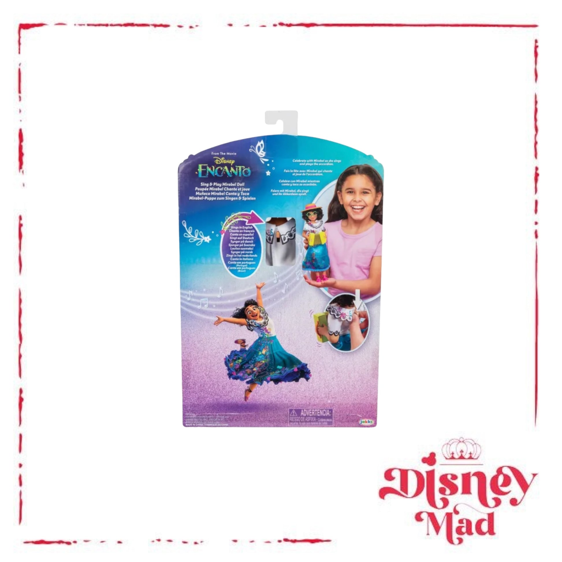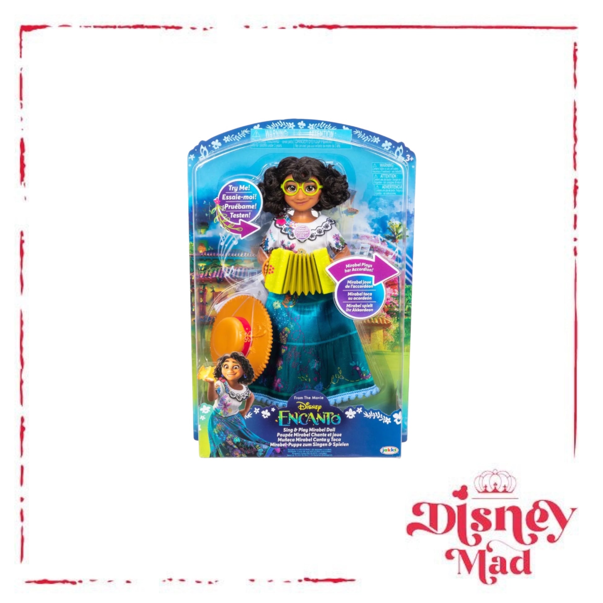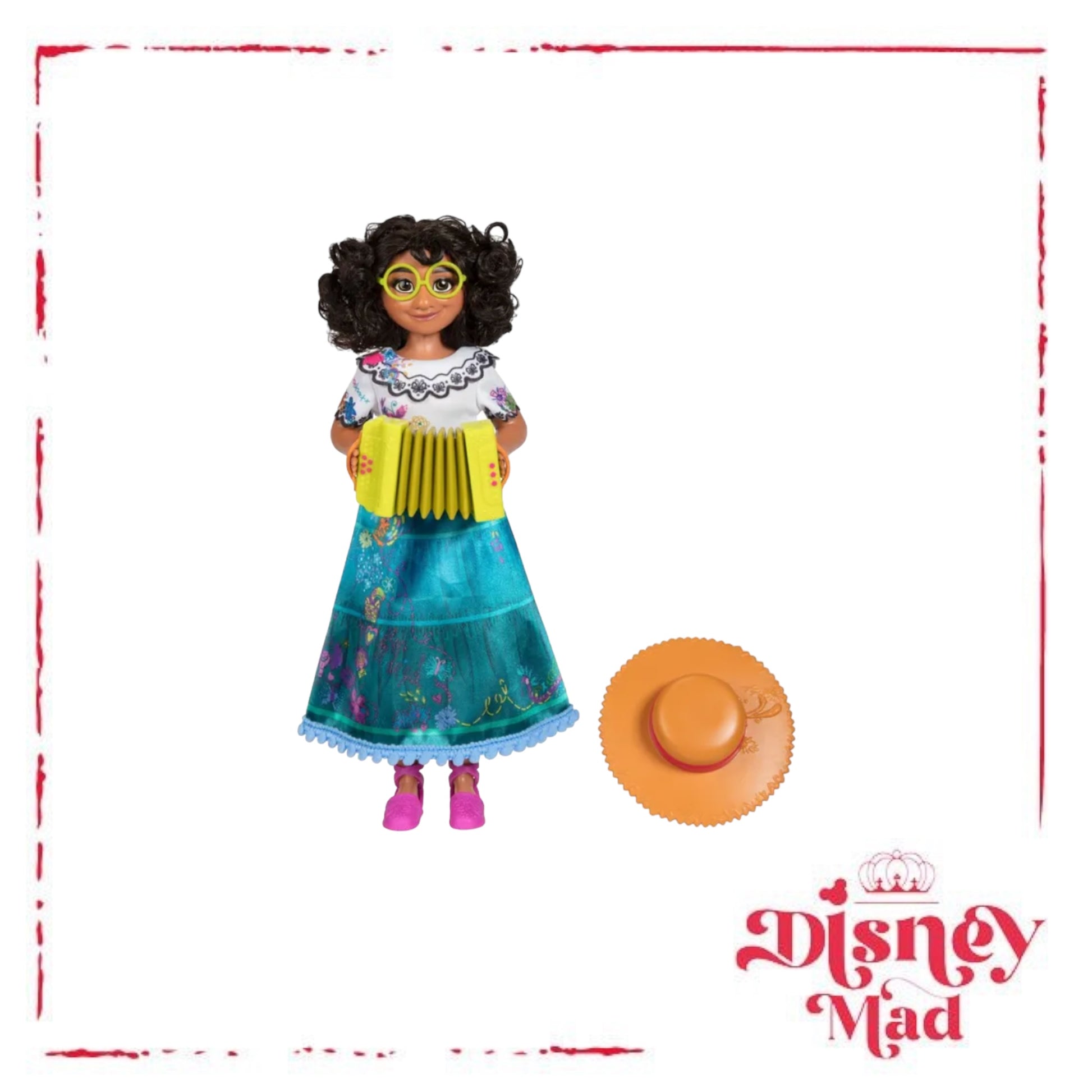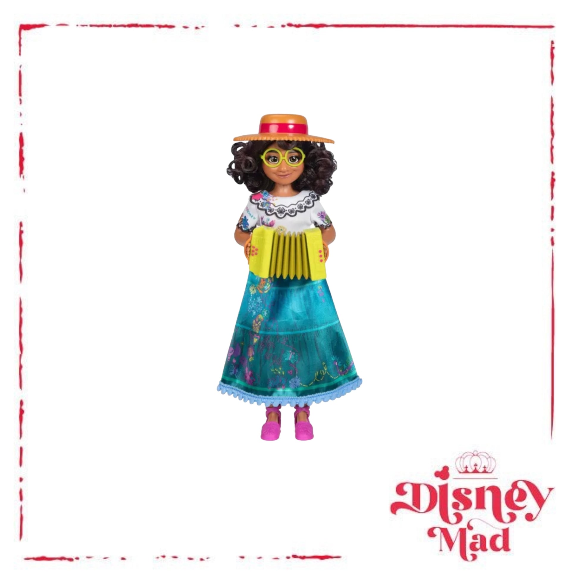 Celebrate the magic of Disney’s Encanto with Sing & Play Mirabel! This doll can actually play the accordion with your help, just like she does in the film! Press the lever on the back of the doll to help Mirabel move her arms to “play” her accordion as she sings! Dressed in her signature fashion inspired by the film, Mirabel’s outfit includes a beautiful embroidery-styled dress with true-to-film details. She also comes with her signature glasses, espadrille shoes, and hat. With the Sing & Play Mirabel doll, you can play out your favourite scenes from Disney’s Encanto and take Mirabel on your own musical adventure!