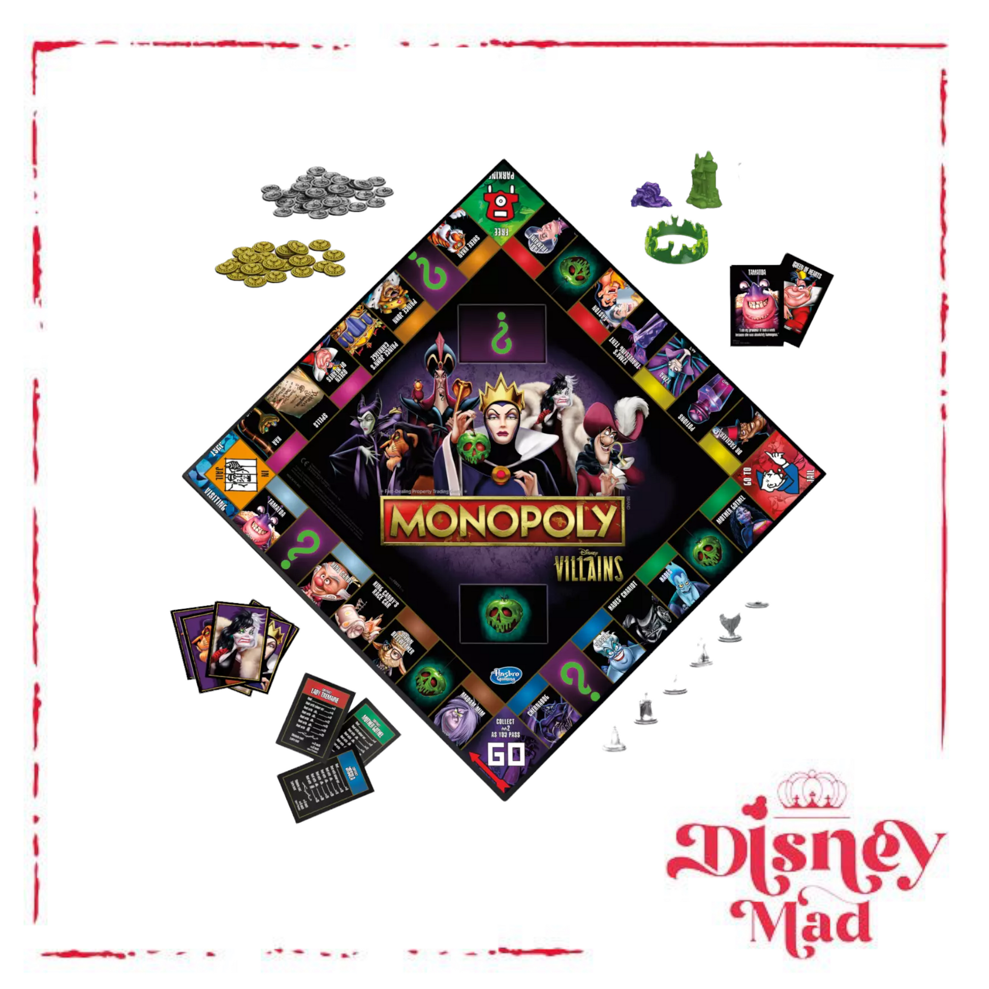 - MONOPOLY GAME: DISNEY VILLAINS EDITION: Disney fans can enjoy playing this edition of the Monopoly board game that features the classic villains seen in Disney movies