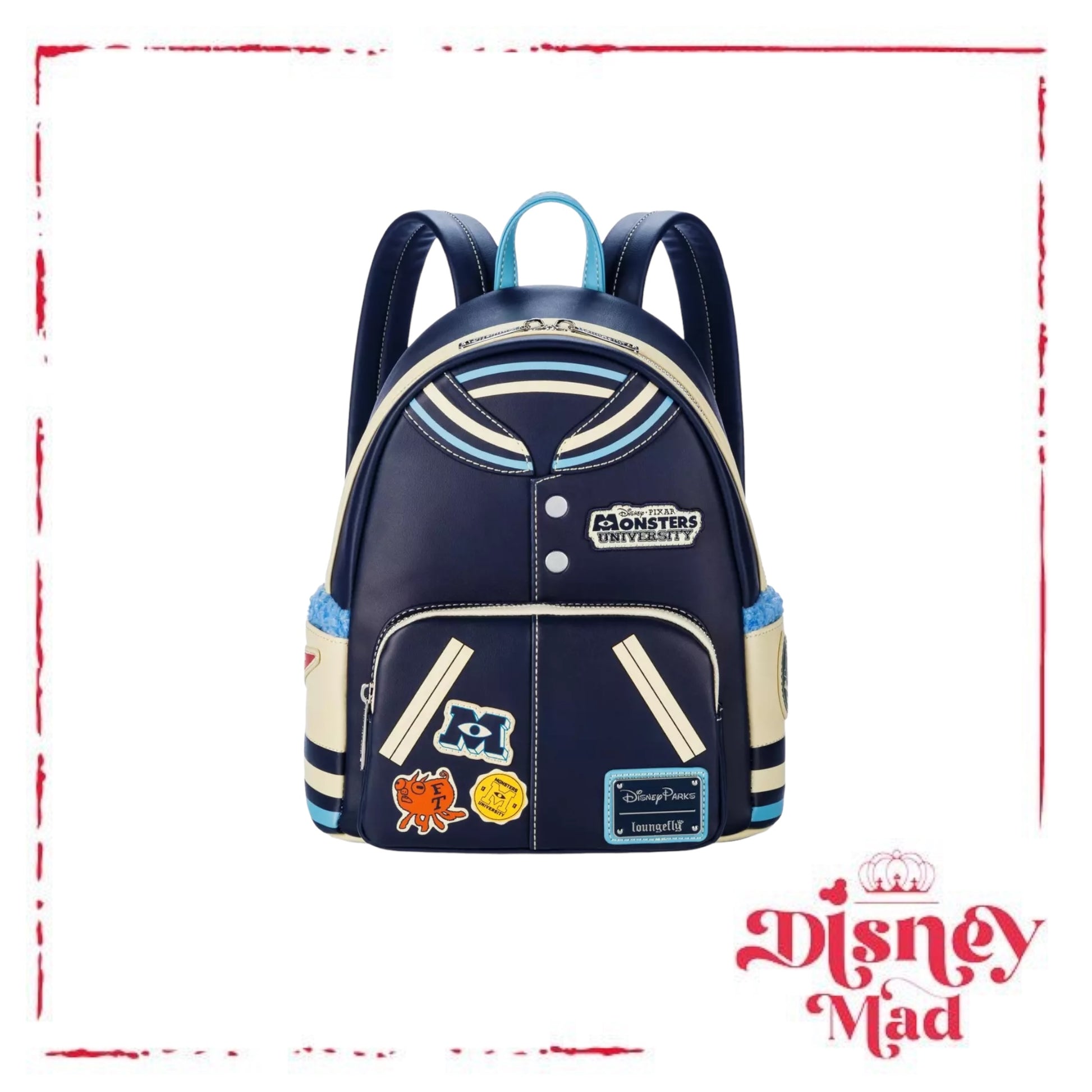 Celebrate the best fears of your life with this Monsters University Loungefly mini backpack. Designed to look like a varsity jacket, complete with stripes and faux buttons, it features patches including the ''Disney Pixar Monsters University'' logo, the Monsters U. logo and medal, and Archie the Fear Tech mascot. With Loungefly details like a roomy zippered compartment, side slip pockets and more, this smart accessory scores a major win.