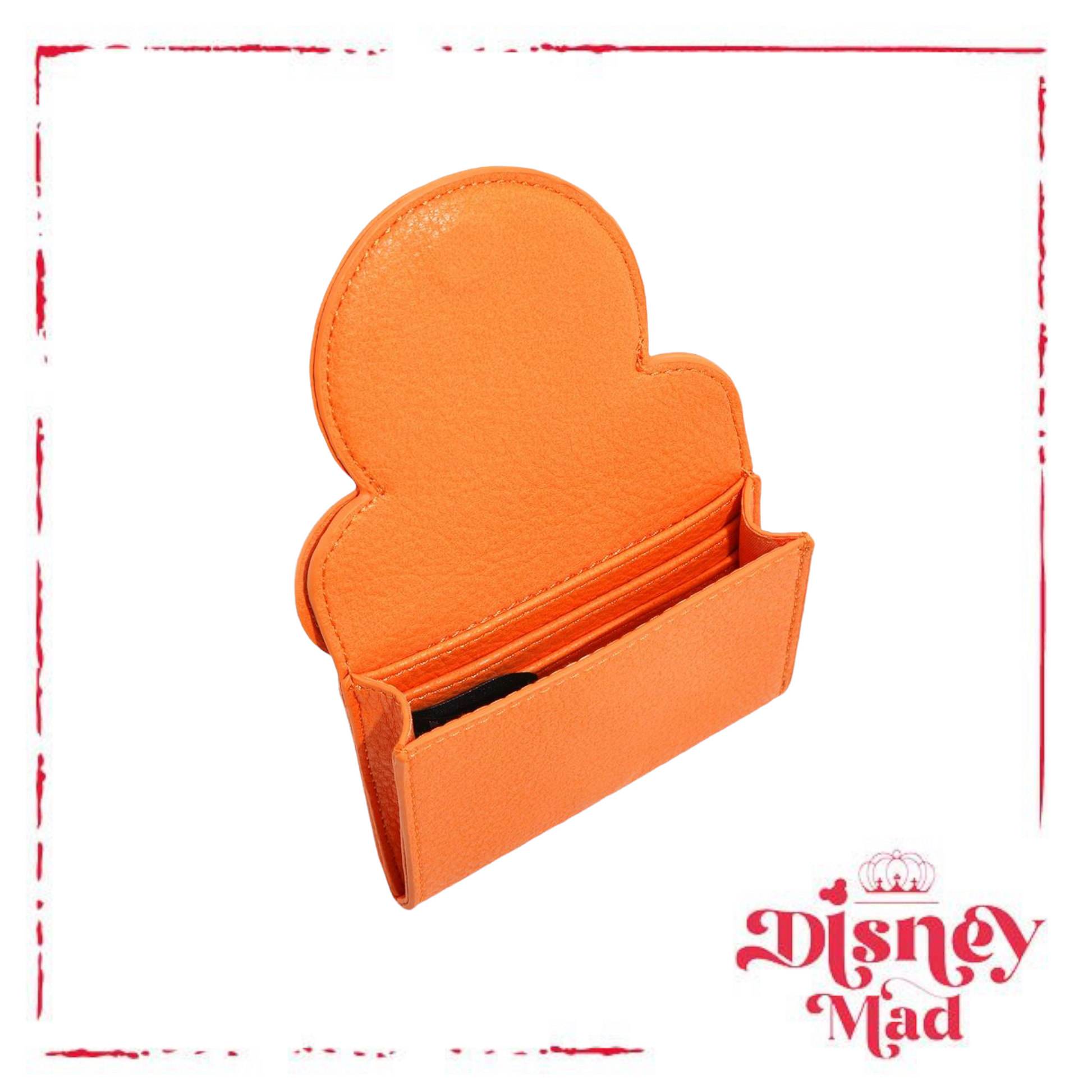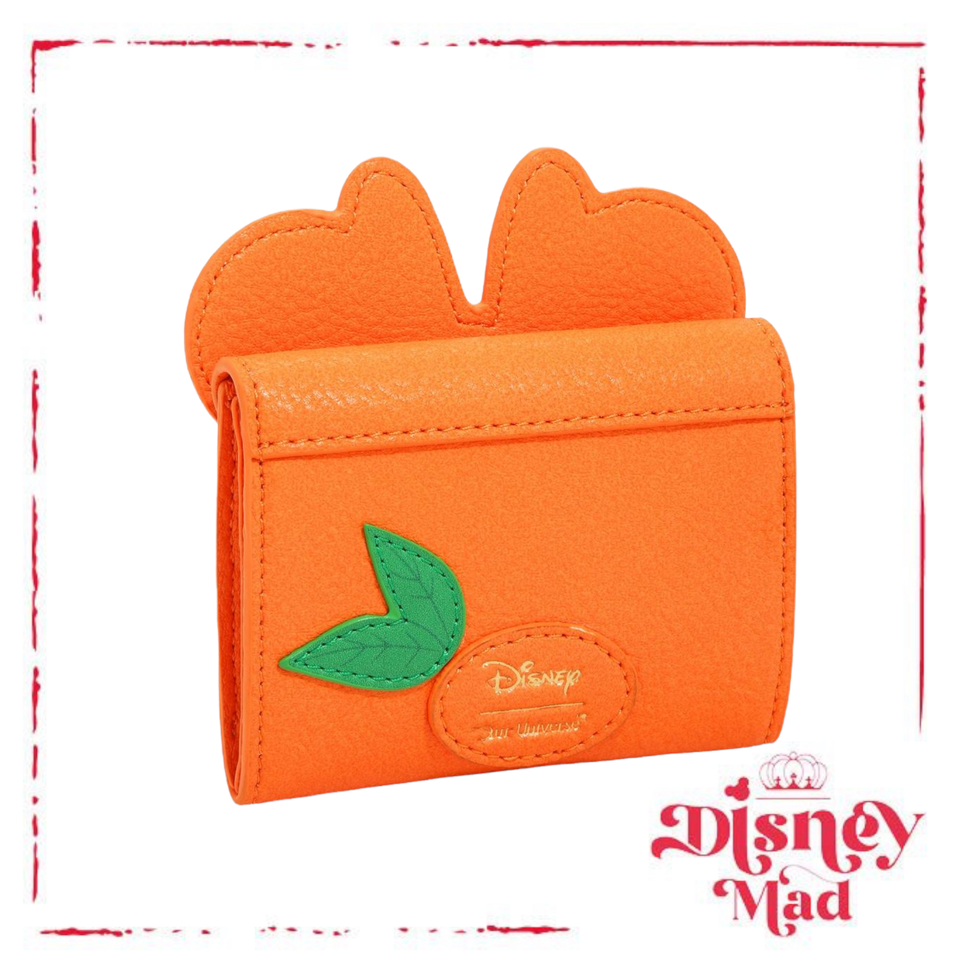 Minnie Mouse is bringing a sweet and fruity treat to your wardrobe with this cardholder from Our Universe! Featuring a die-cut appliqué of Minnie's Mouse Ears logo reimagined with a citrus twist, this accessory's matching solid-color canvas makes a perfect accenting style for a slight dash of orange to any look. Also features a die-cut brand badge with a die-cut orange leaf appliqué on the back and a magnet flap closure.