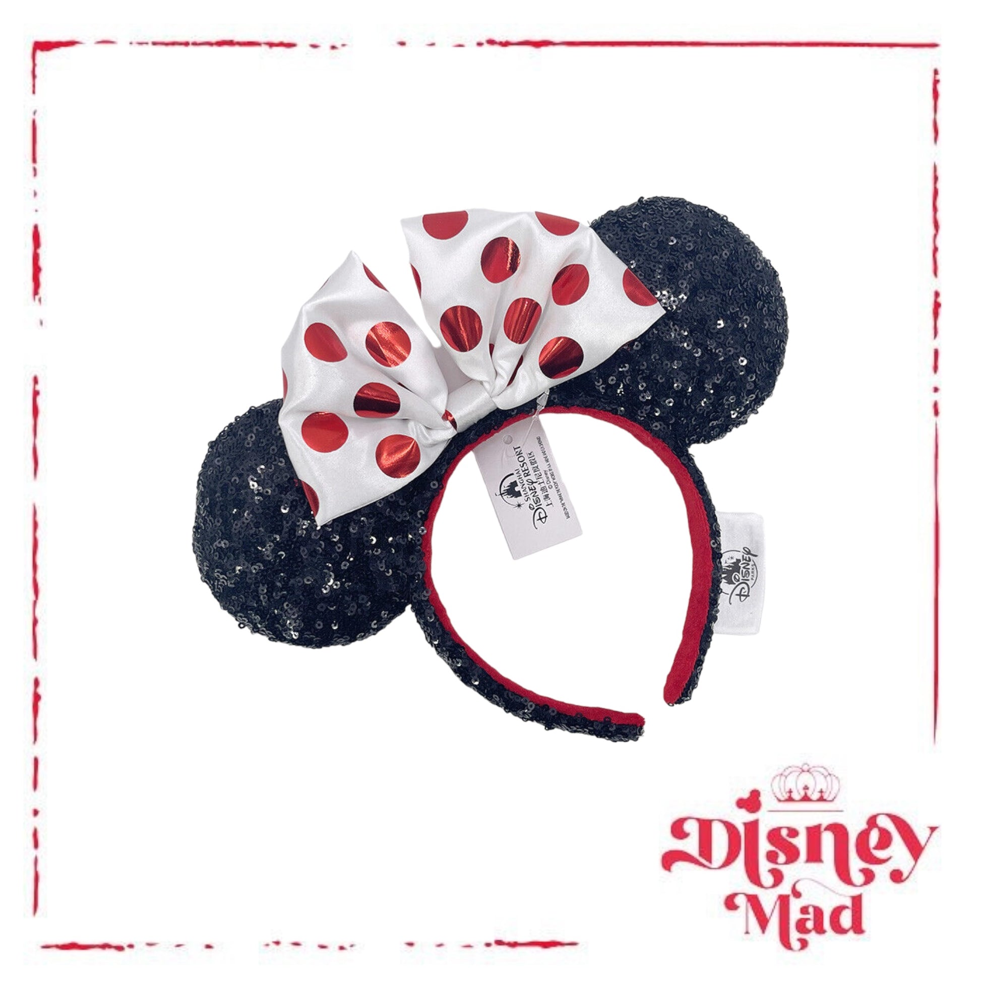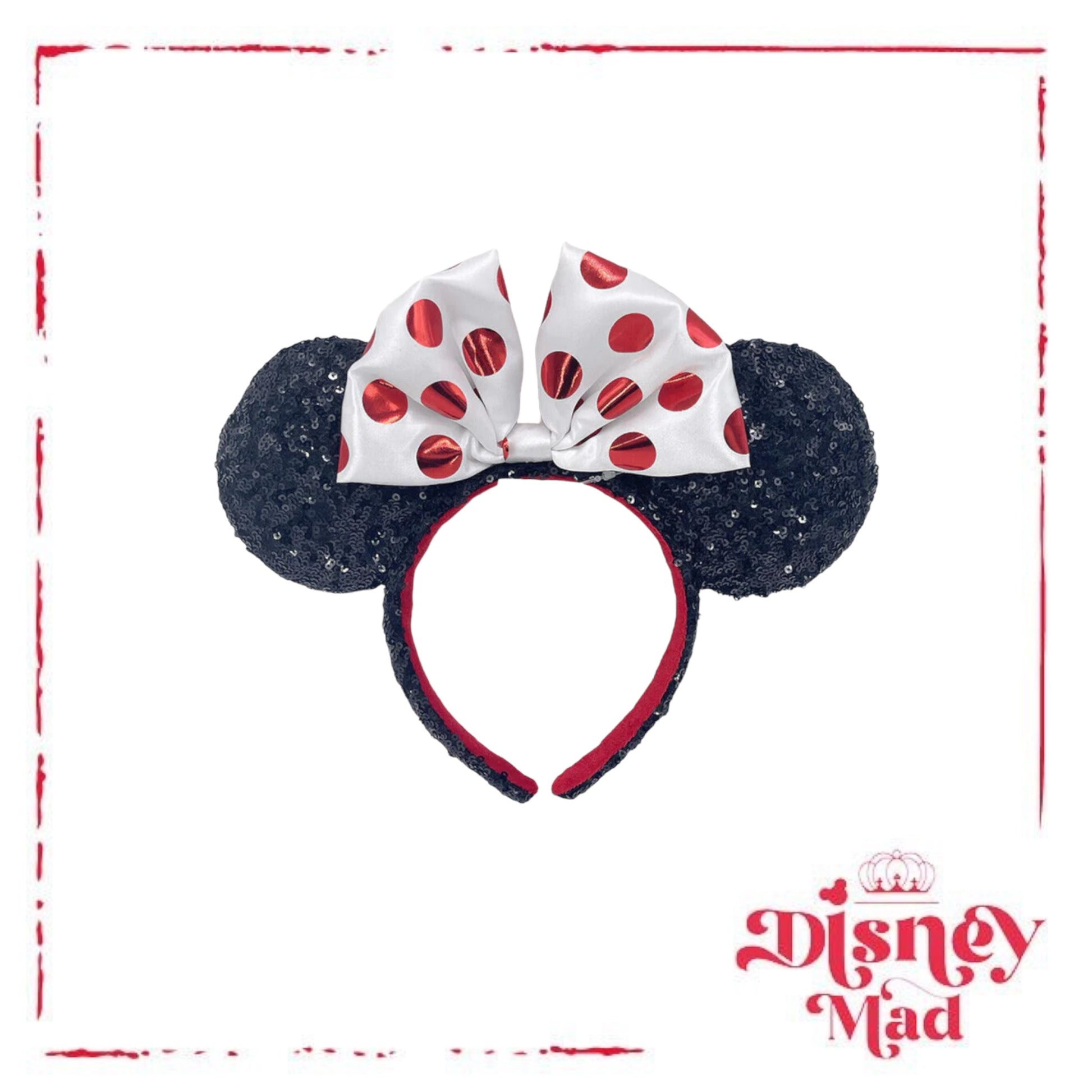 Red And White Polka Dot Sequin Minnie Mouse Ear Headband - Disney Parks