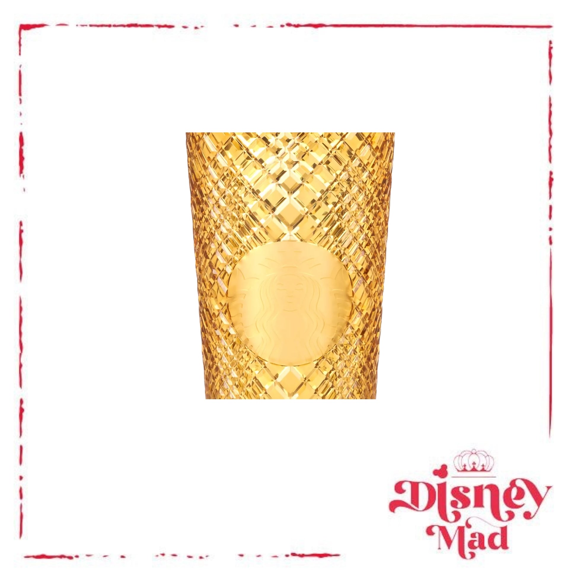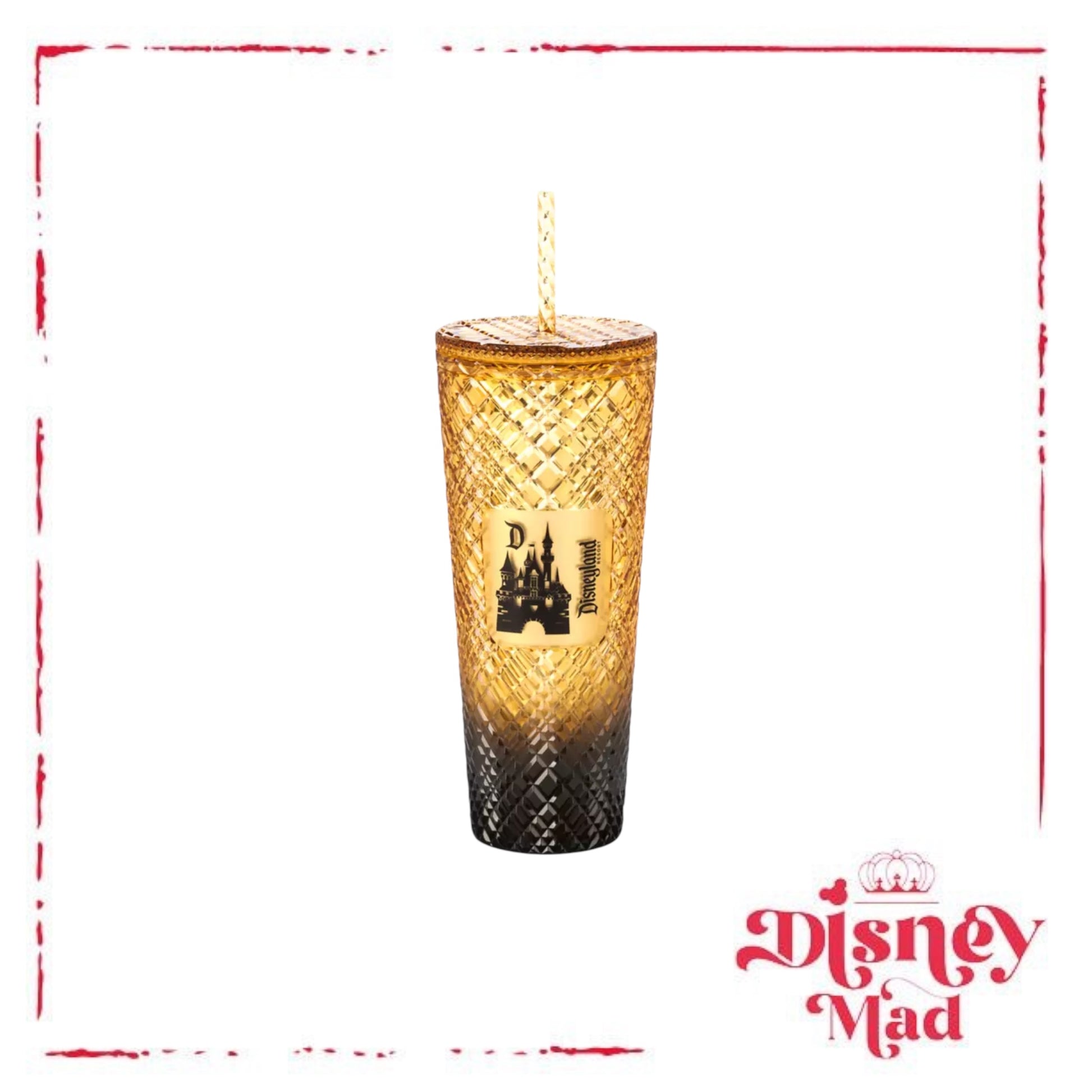 Hold onto special memories of your visits to The Happiest Place on Earth every time you pick up this golden tumbler with straw by Starbucks®. Featuring Sleeping Beauty Castle, the Disneyland Resort logo, and a dazzling allover raised geometric design, it holds 24 oz. so you'll stay refreshed happily ever after.