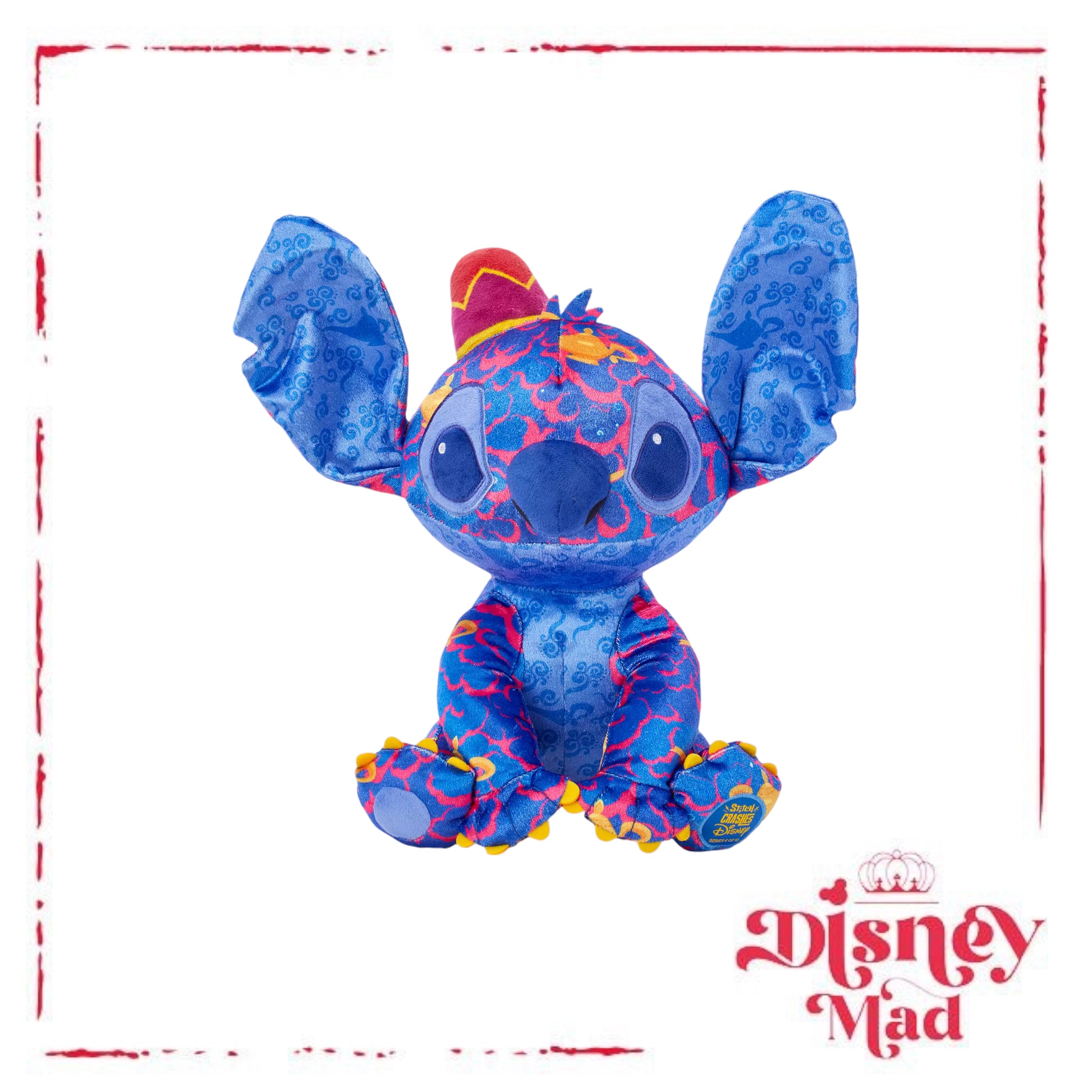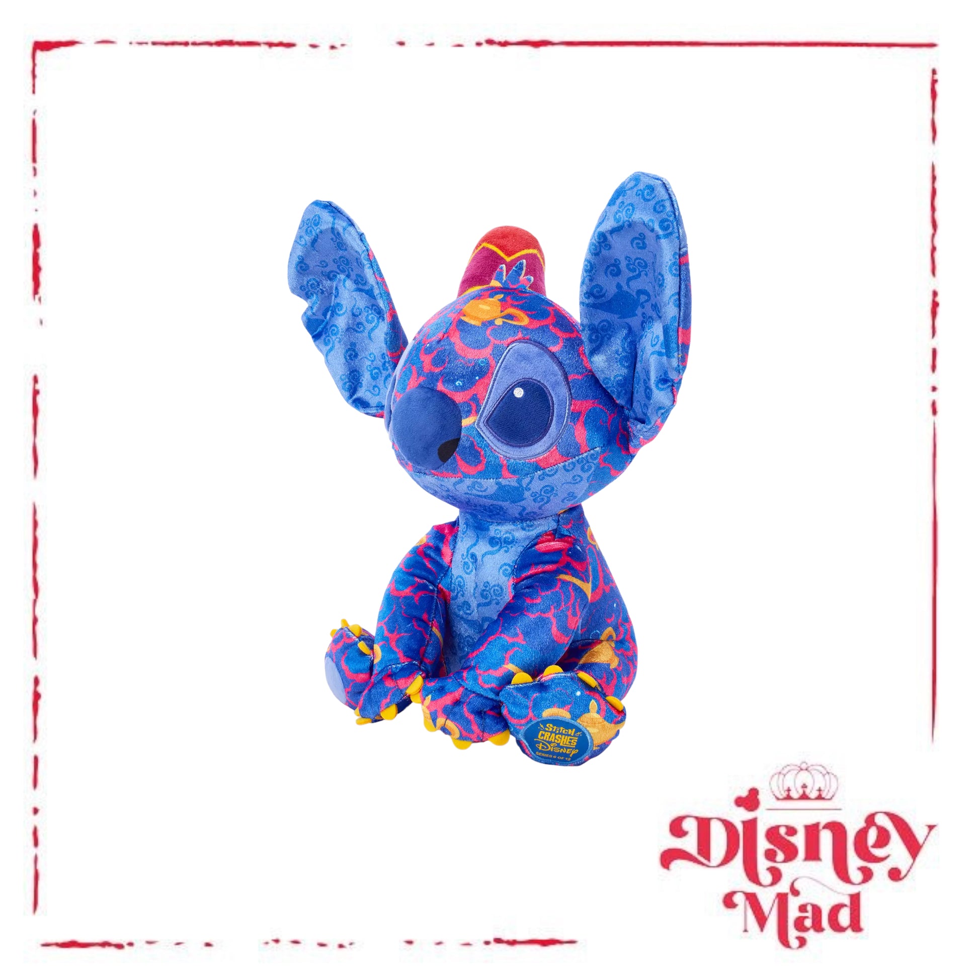 Inspired by the original Lilo & Stitch theatrical film trailers featuring Stitch crashing classic Disney film scenes, this monthly, limited release series of collectible premium plush puts a new spin on the extraterrestrial's antics. Each release honors a different, beloved Disney feature. This month's entry is inspired by Aladdin, bringing Stitch to a whole new world of fun.