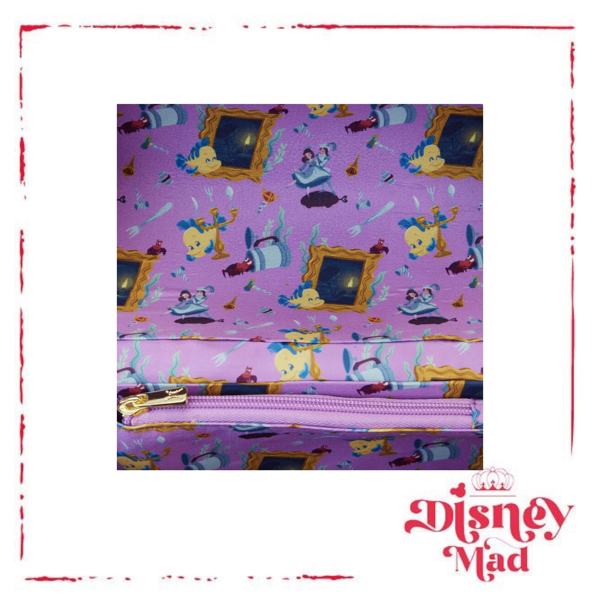 Each bag also comes with a matching 1.5-inch enamel pin of a treasure chest with Sebastian inside. This pin, which is only available with this Stitch Shoppe collection, features shiny gold hardware and the classic Loungefly/Funko crown debossing on the back.