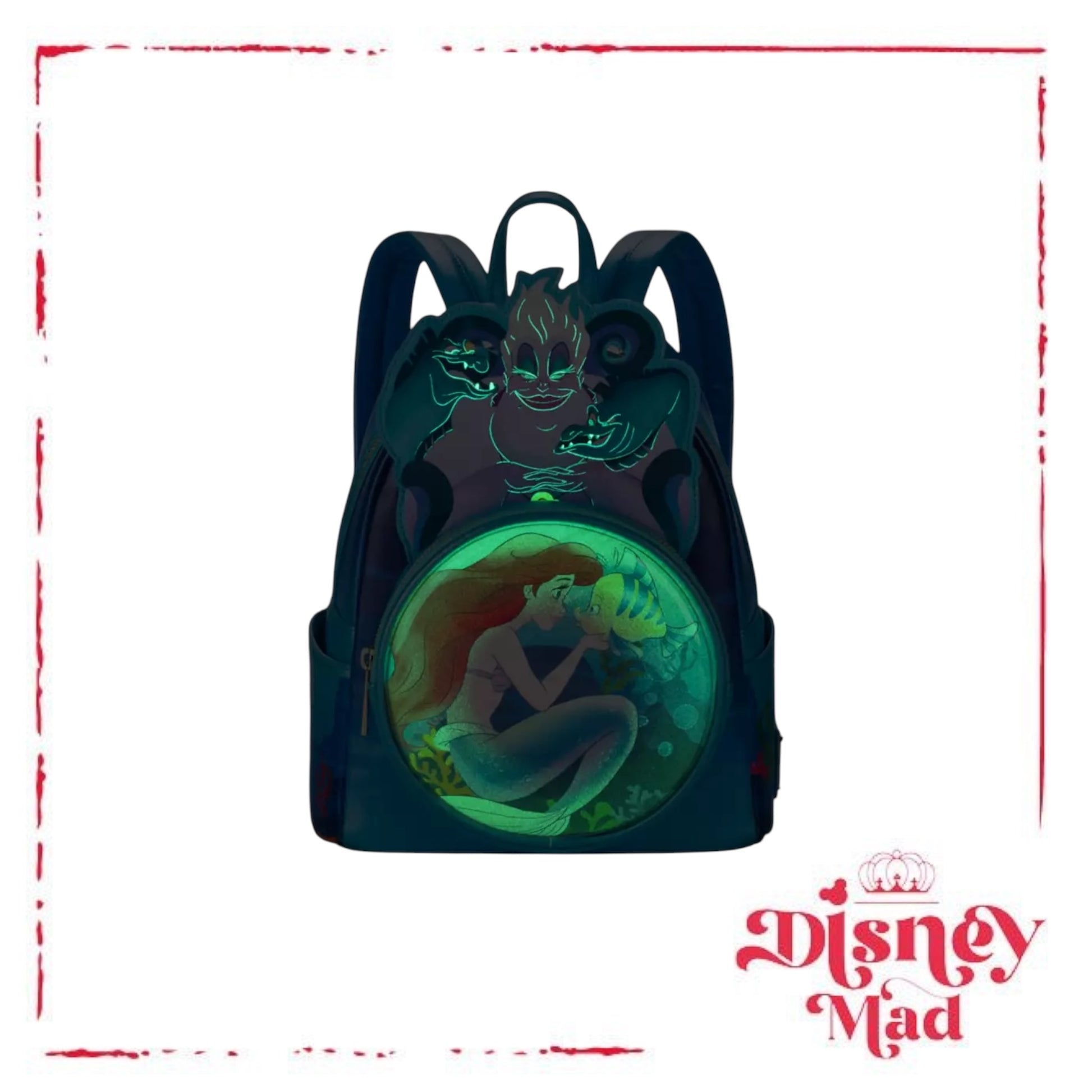 It's not hard to fathom why The Little Mermaid has been so popular since its release in 1989. In celebration of its 35th anniversary, Loungefly have created this commemorative backpack. Ariel and Ursula are among the film's favorite characters featured in the 3D dimensional design of this simulated leather bag that includes glow-in-the-dark features. You'll definitely want to make it part of your world.