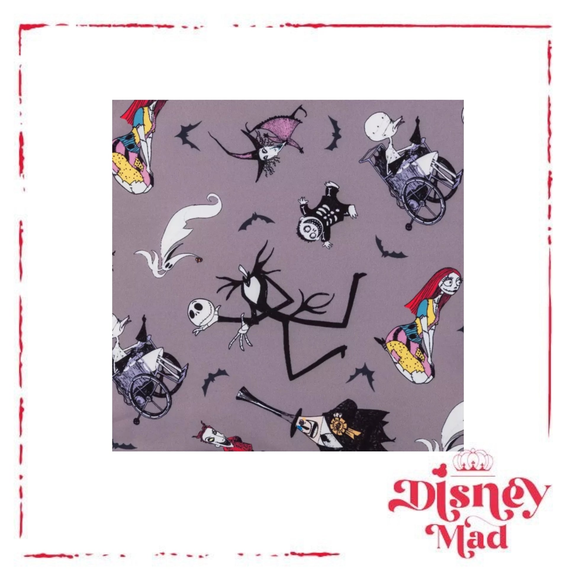 - Allover print featuring Jack Skellington, Sally, Zero, Mayor, Dr. Finklestein, Lock, Shock, and Barrel