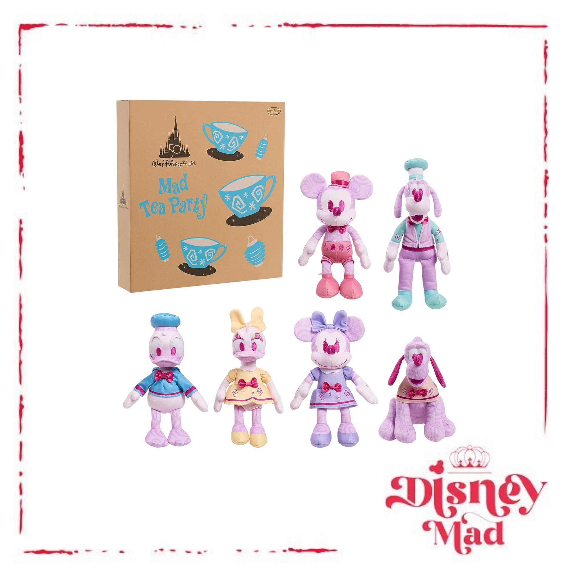 - The Walt Disney World 50th Anniversary Celebration Mad Tea Party Plush collection includes limited-release Mickey Mouse, Minnie Mouse, Donald Duck, Daisy Duck, Goofy, and Pluto premium plushies in an exclusive, pastel colorway inspired by the attraction.