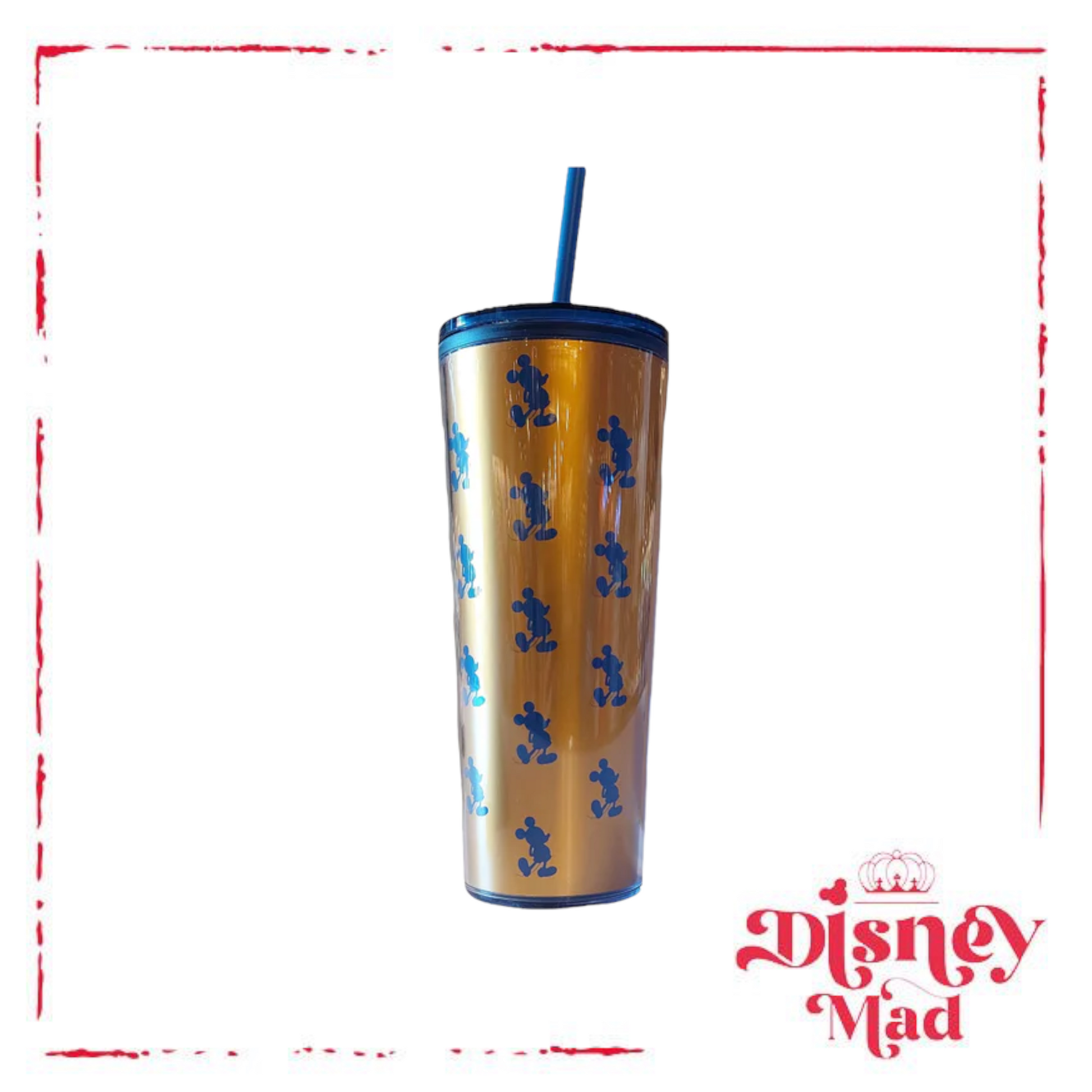 Walt Disney World Blue & Gold Mickey Mouse Tumbler With Straw