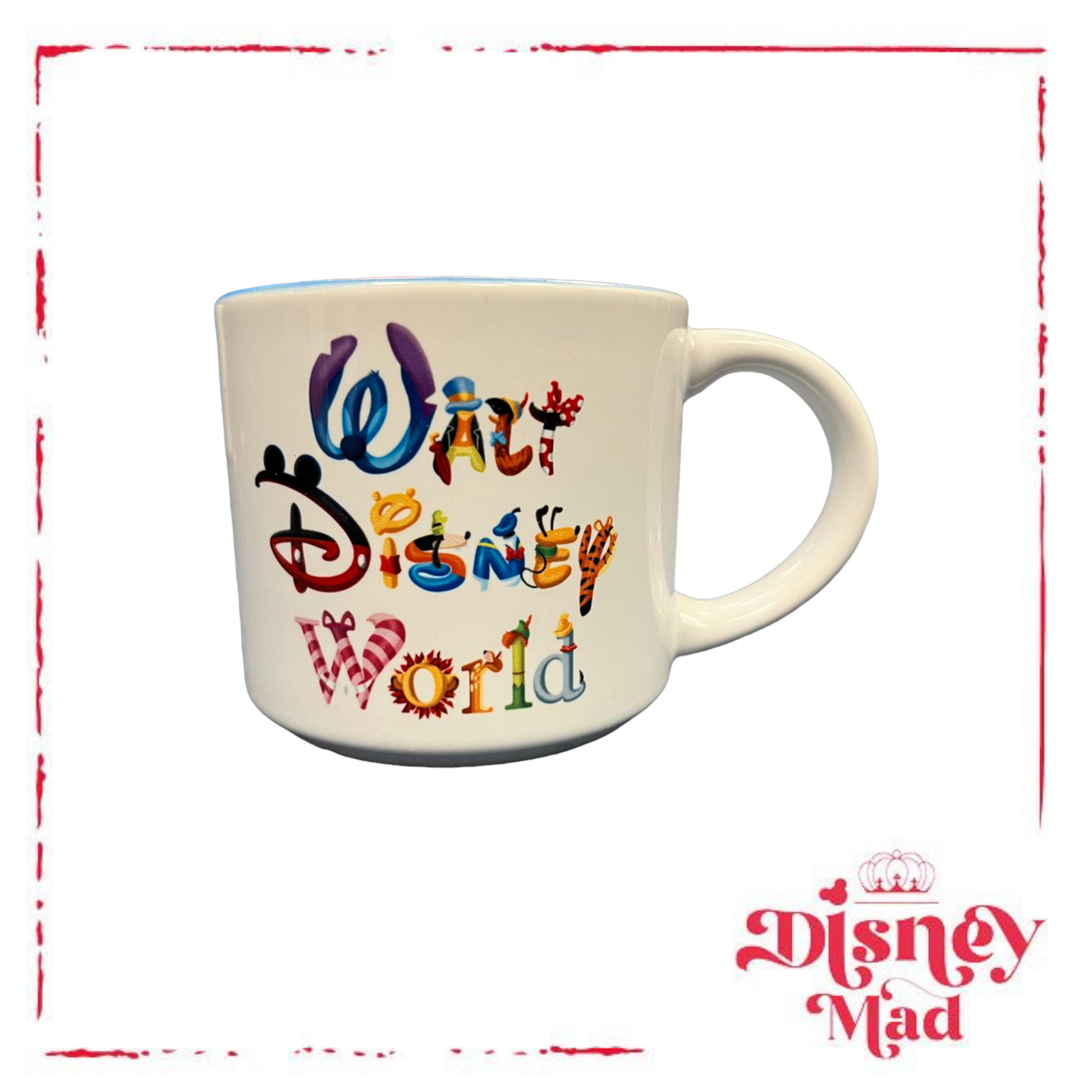 Pep up with your favorite character memories of the Most Magical Place on Earth with character art text spelling out ''Walt Disney World'' on this ceramic mug. A magical day awaits after a pixie-dusted cup of your favorite brew from this handsome drinkware.