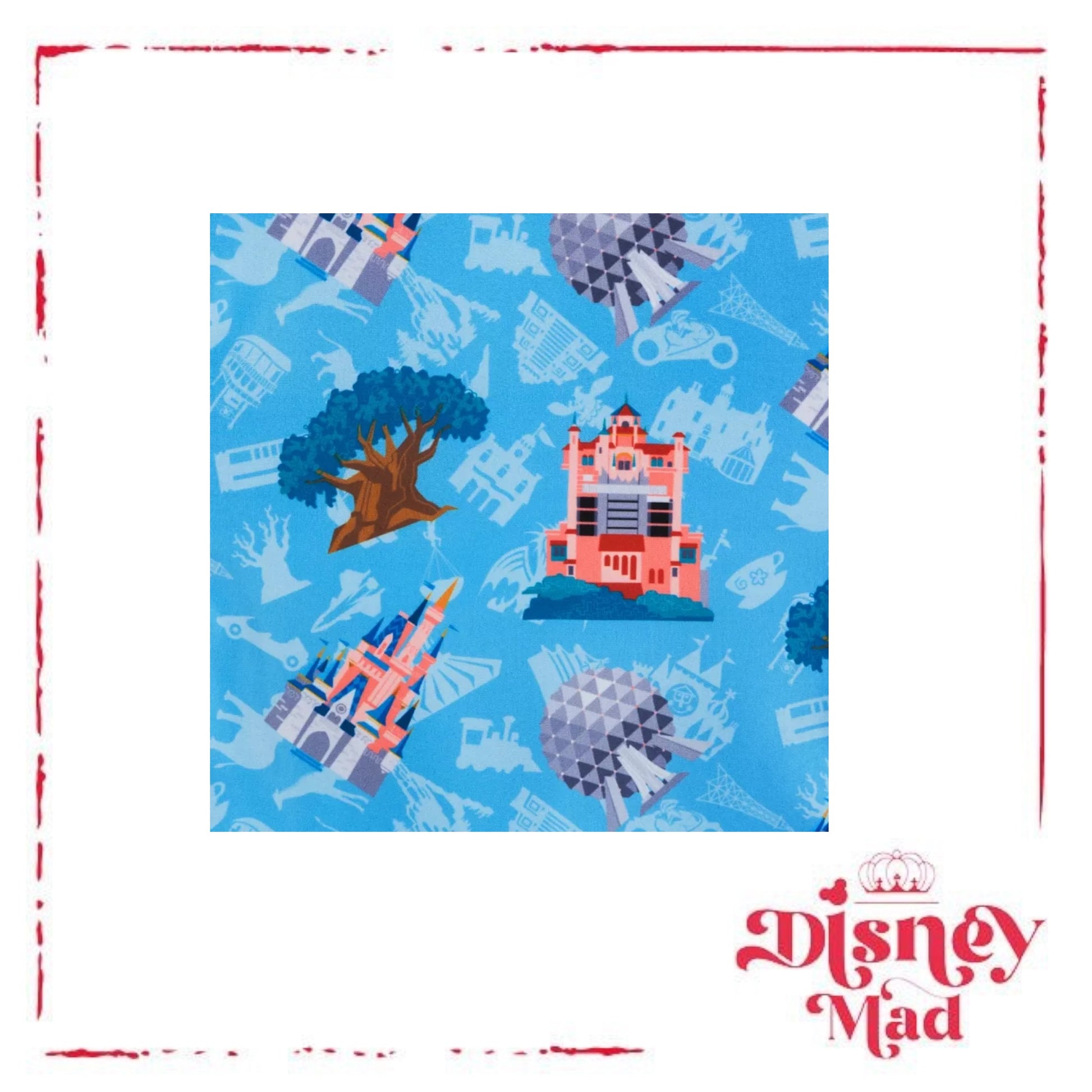 - Lining features allover print of The Tree of Life, Spaceship Earth, Hollywood Tower Hotel, Cinderella Castle and other Parks landmarks and characters